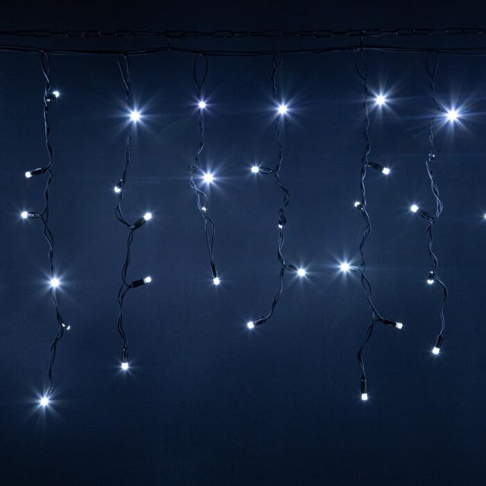 Гирлянда Бахрома 5 м Белая с мерцанием 220В, 200 LED, Черный Каучук, IP65