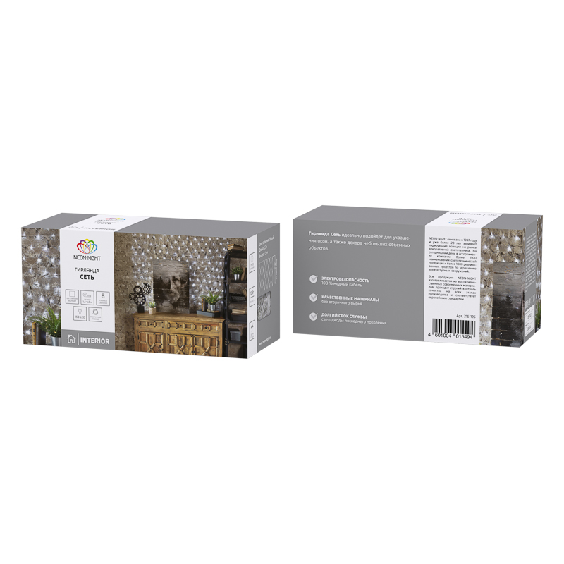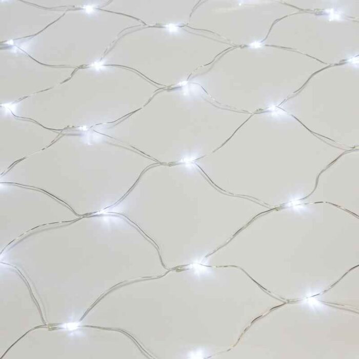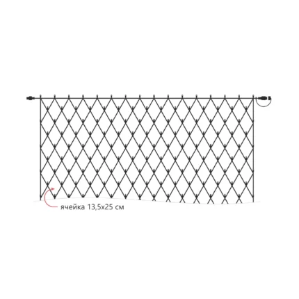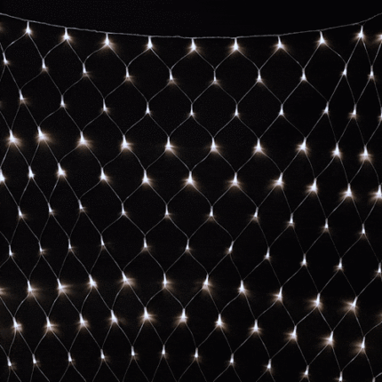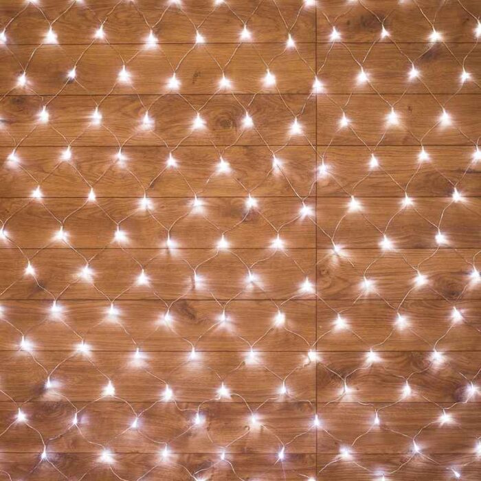 Световая гирлянда в форме сетки размером 1,5 на 1,5 метра – отличное решение для украшения окон. 96 диодов, равномерно распределенных по площади, создают мягкое свечение.