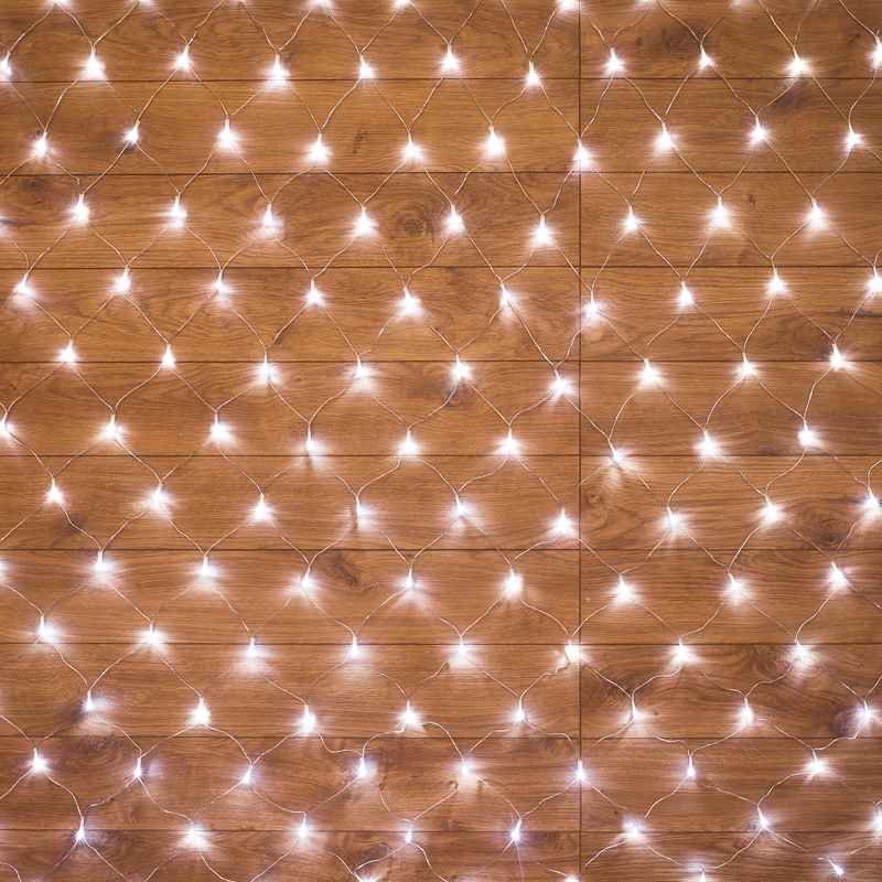 Гирлянда Cветодиодная Cеть 1,5×1,5 м Белая свечение с динамикой, 230В, 96 LED, Провод Прозрачный ПВХ, IP20