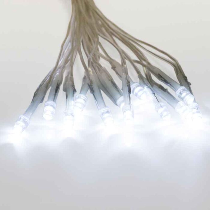 Основой конструкции является серебристый провод, заключенный в прозрачную ПВХ-оболочку, что придает ей воздушный вид. Для удобства монтажа предусмотрены крючки с присосками. Длина шнура питания составляет 3 метра, избавляя от необходимости использовать дополнительные удлинители.