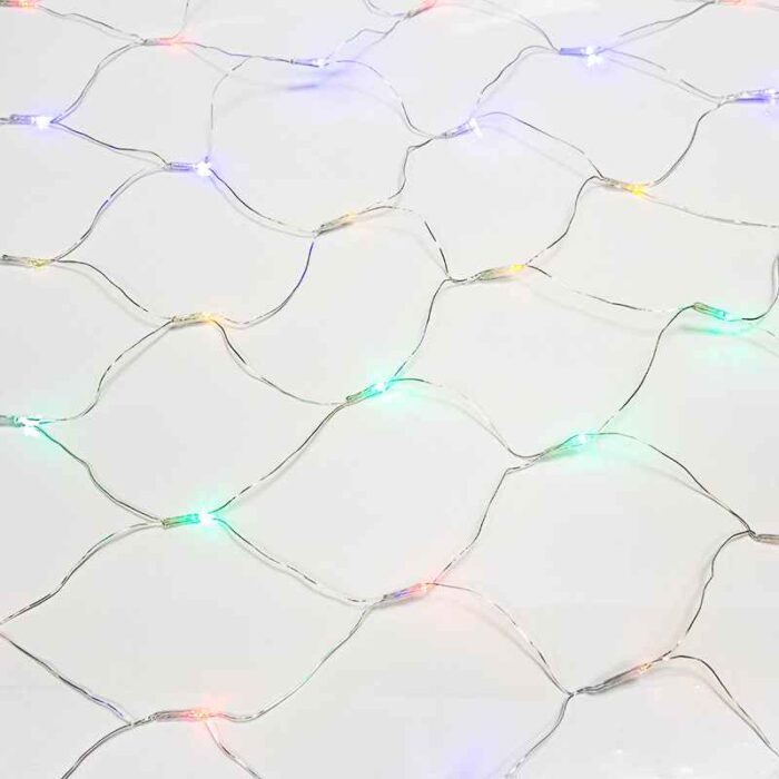 Гирлянда Cветодиодная Cеть 1,5×1,5 м Мультиколор свечение с динамикой, 230В, 150 LED, Провод Прозрачный ПВХ, IP20