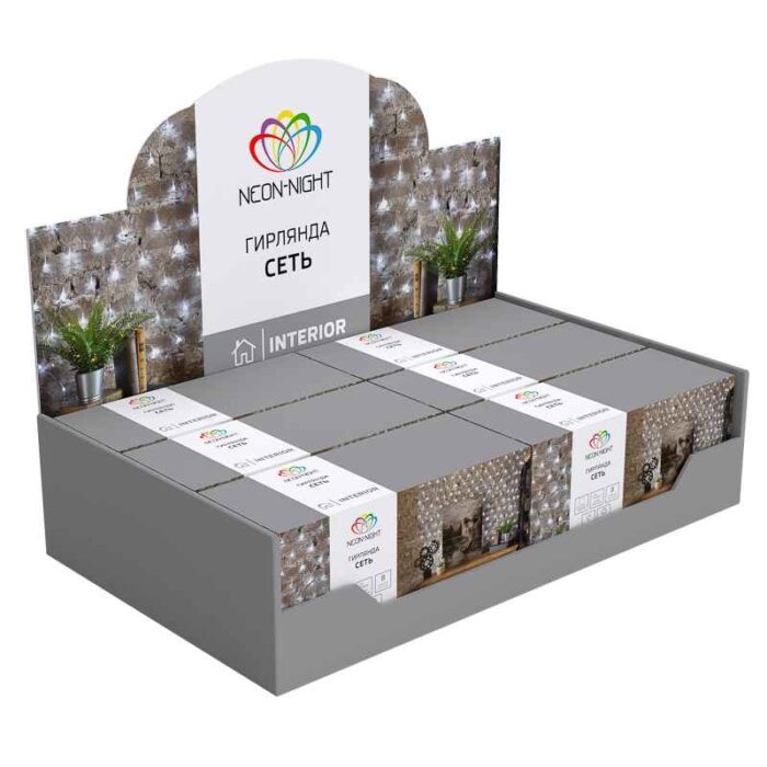 Световая гирлянда в форме сетки размером 1,5 на 1,5 метра – отличное решение для украшения окон. 150 диодов, равномерно распределенных по площади, создают мягкое свечение.