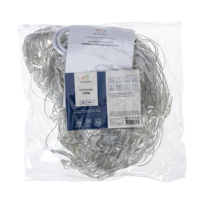 Гирлянда Cветодиодная Cеть 1,5x2x2 м Белая свечение с динамикой, 230В, 136 LED, Провод Прозрачный ПВХ, IP65