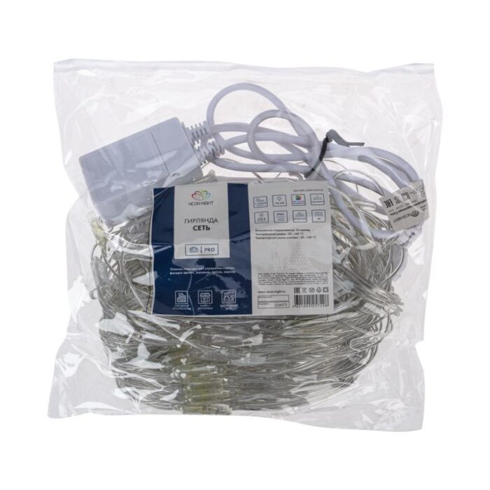 Гирлянда Cветодиодная Cеть 1,5x2x2 м Мультиколор свечение с динамикой, 230В, 136 LED, Провод Прозрачный ПВХ, IP65