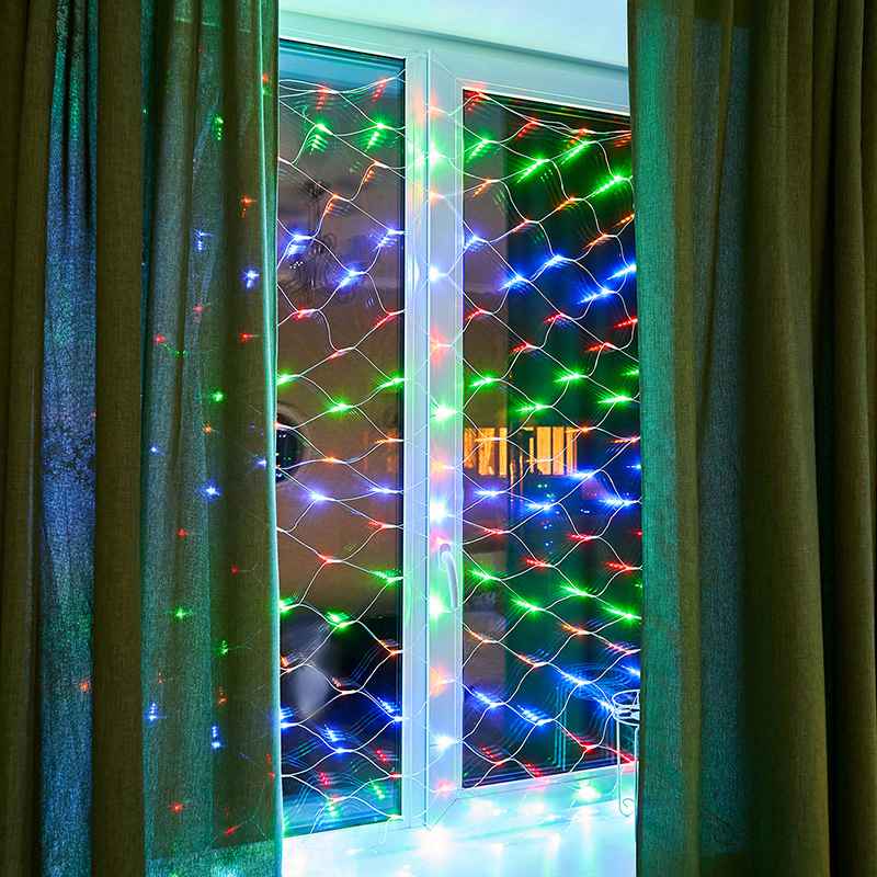 Светодиодная гирлянда «Сеть» размером 1,8×1,5 метра представляет собой декоративное полотно с ромбовидными ячейками, в узлах которых расположены 180 ярких светодиодов. Это украшение идеально подходит для эффектного оформления оконных проемов и легко крепится благодаря присоскам с крючками.
