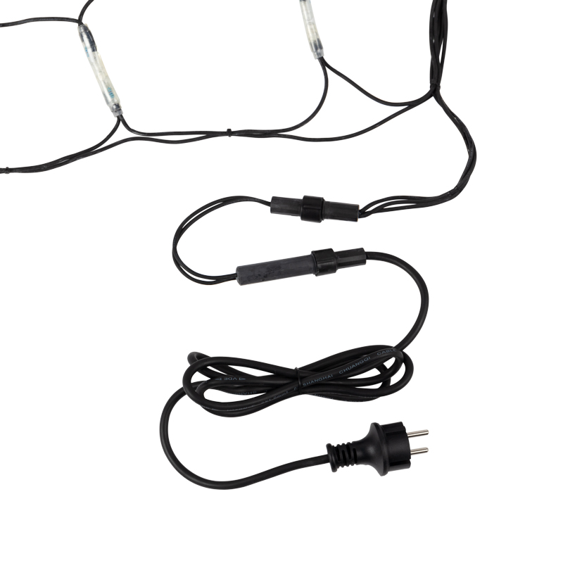 Светодиодная гирлянда в виде сети оформлена прямоугольниками, разделенными на равные ромбы. В углах ромбов расположены светодиоды, чередующиеся вдоль линии. Благодаря своей необычной форме, гирлянда прекрасно подходит для украшения кустов, оборачивания колонн и столбов, а также для создания растяжек между опорами в беседках или на верандах. Часто её применяют для оформления окон и потолков.