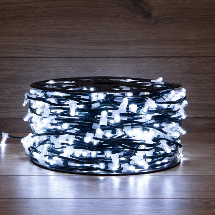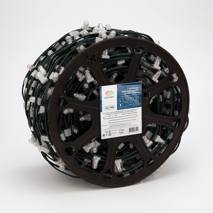 К достоинствам этой гирлянды относятся: усиленный, более прочный провод, низкое рабочее напряжение, повышенная защита от влаги и широкий выбор цветовых вариантов. Важно отметить, что гирлянда не нагревается в процессе работы, что делает её абсолютно безопасной для растений и людей. Данная гирлянда поставляется в бухтах длиной 100 метров на прозрачной ПВХ основе.