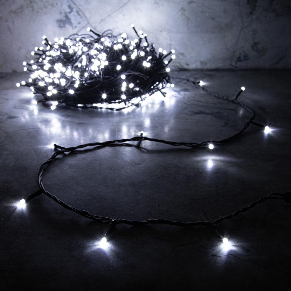 Гирлянда Клип Лайт Белая с мерцанием 30 м, 300 LED, Провод Черный Каучук, IP55