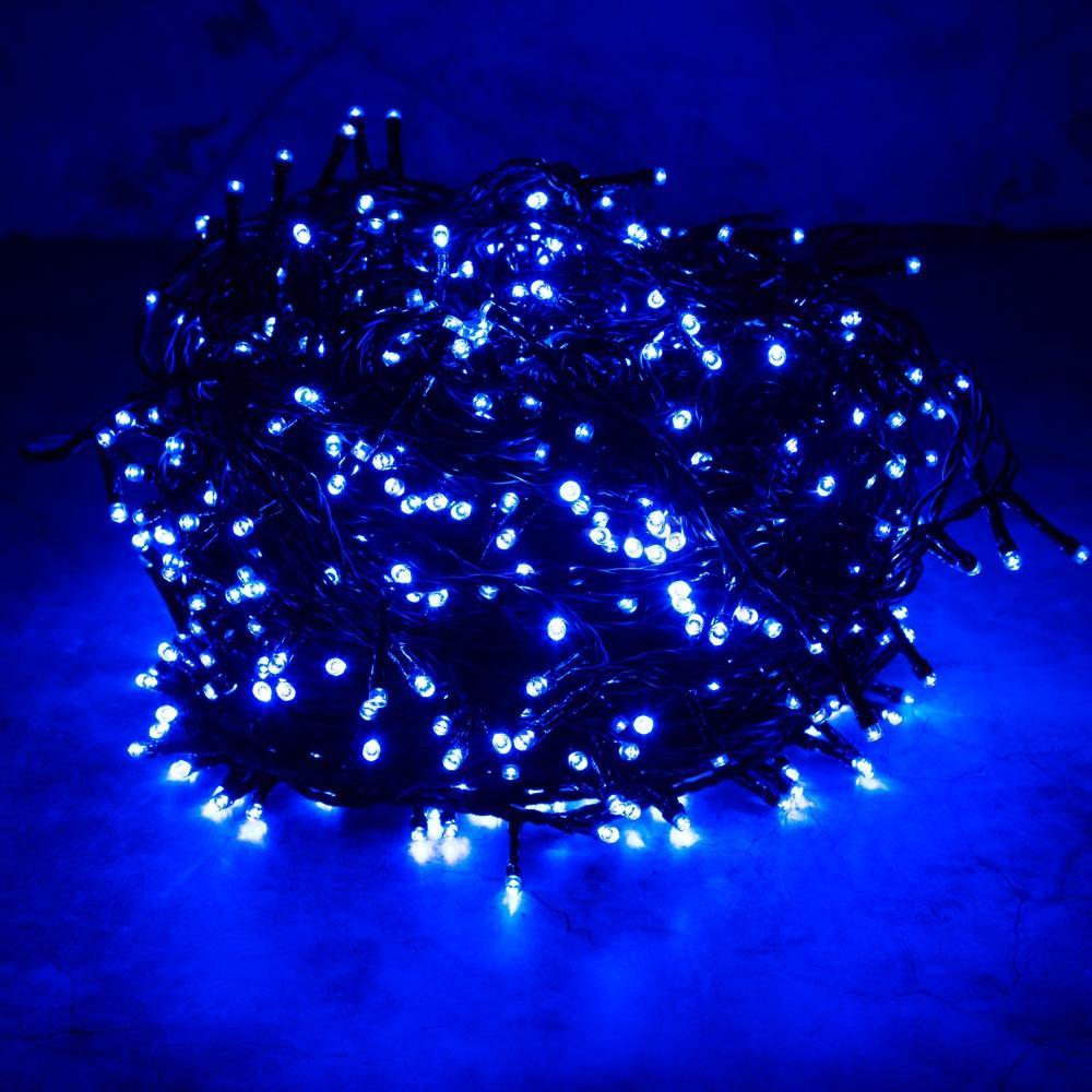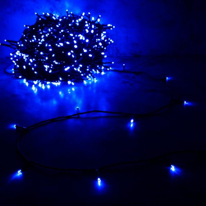 Гирлянда Клип Лайт Синяя с мерцанием 100 м, 1000 LED, Провод Черный Каучук, IP55