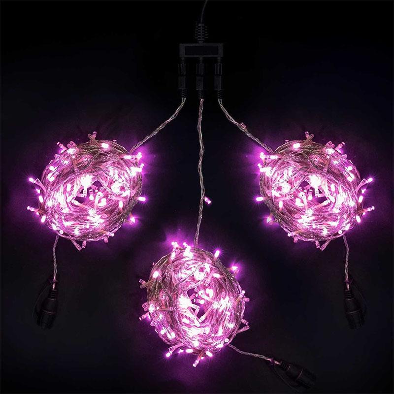 Гирлянда Клип Лайт Спайдер, Комплект 3 Светло-Розовых Нити по 20м c Контроллером, 600 LED, Провод Прозрачный Силикон, IP65
