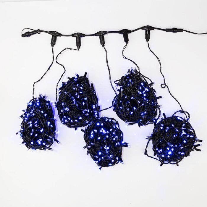Гирлянда Клип Лайт Спайдер, Комплект 5 Синих Нити по 20м с постоянным свечением, 24В, 665 LED, Провод Черный ПВХ, IP65