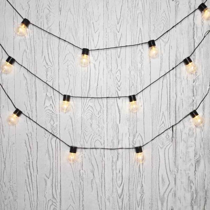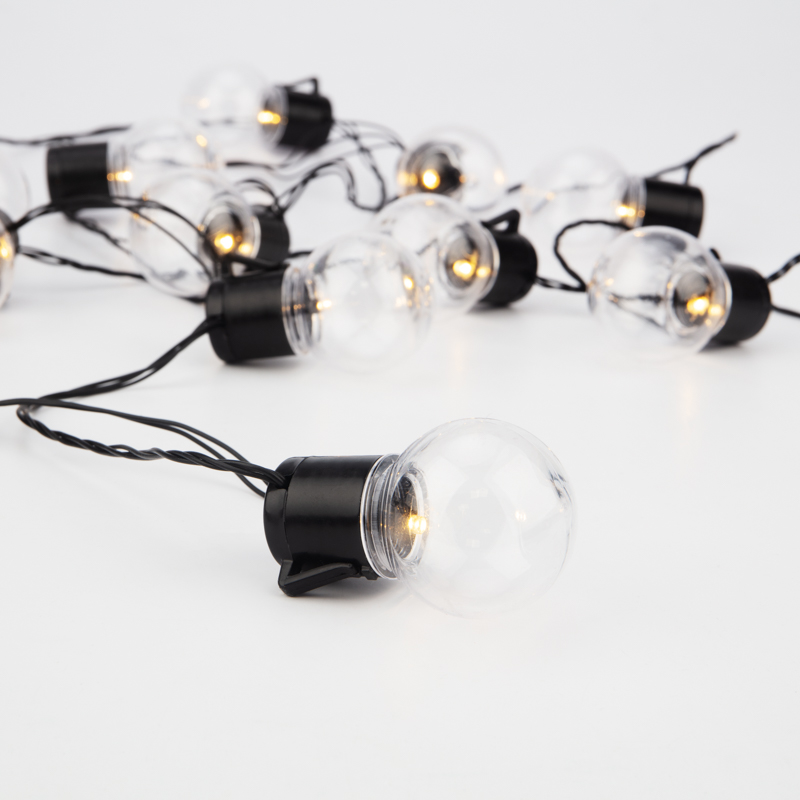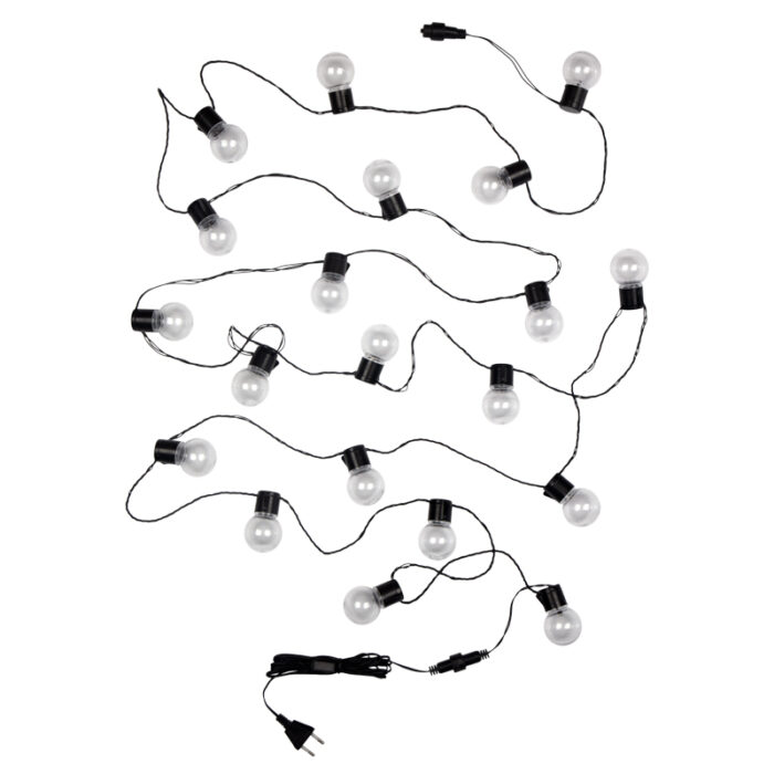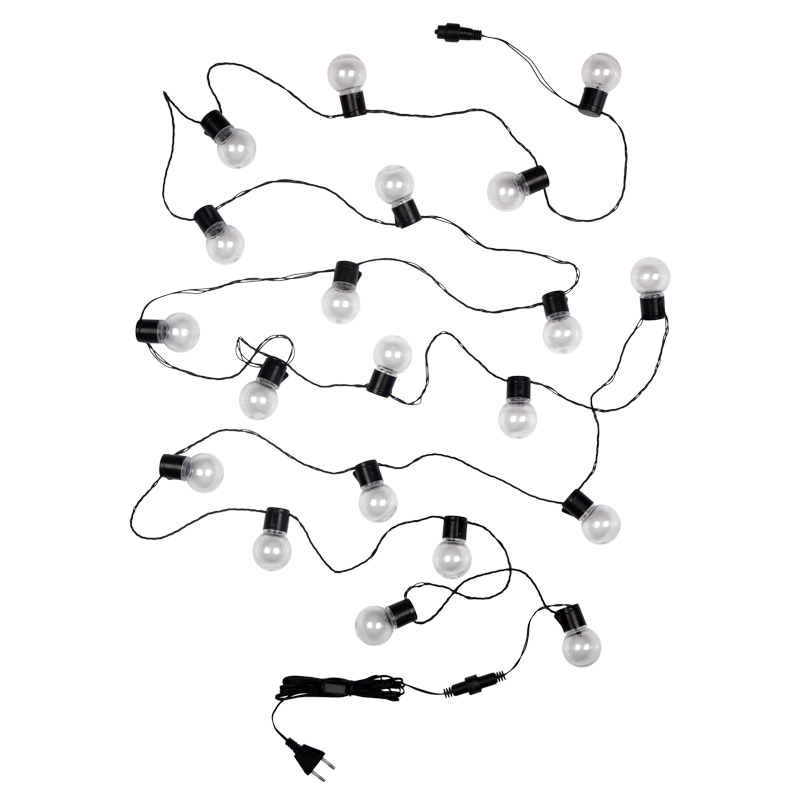Гирлянда Лофт 5м, Тепло-Белый с постоянным свечением, 230В, 20 LED, Провод Черный ПВХ, IP20