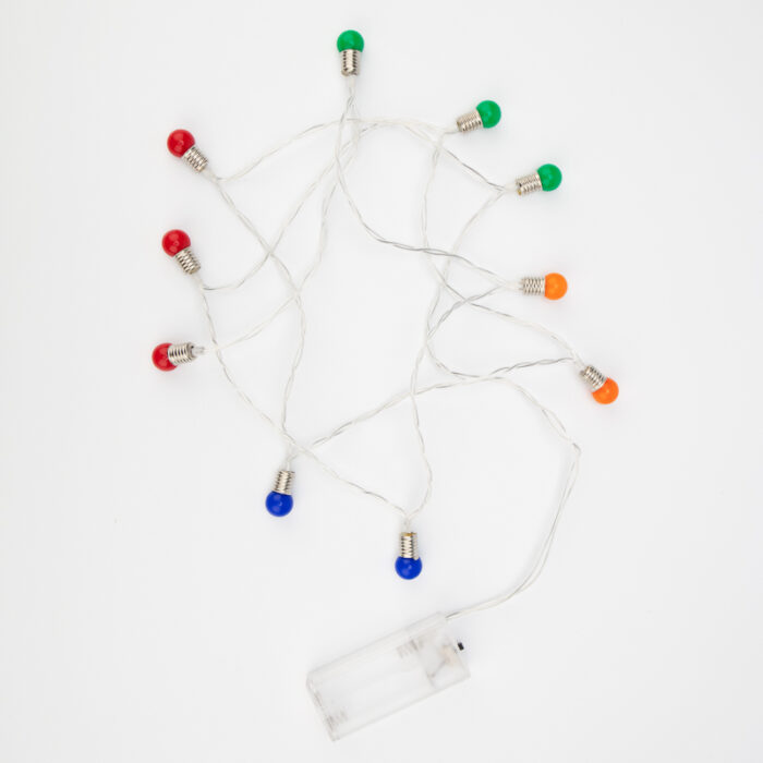 Гирлянда Мини-лампочки 1.5м, Мультиколор с постоянным свечением, 3В, 10 LED, Провод Прозрачный ПВХ, IP20