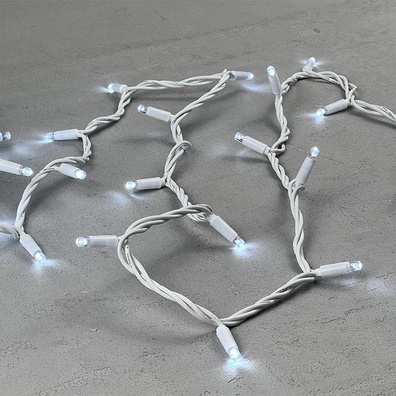 Гирлянда Нить 10м Белая 220В, 100 LED, Провод Белый Каучук, IP65