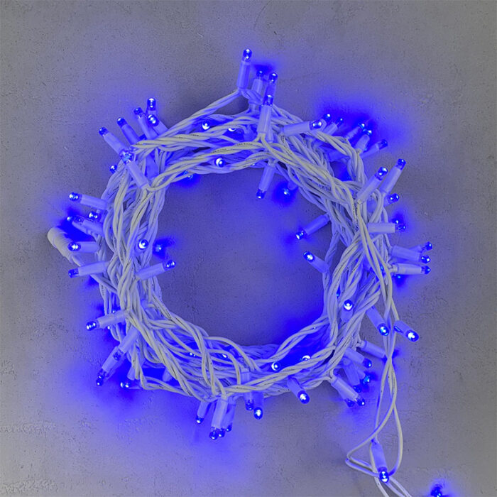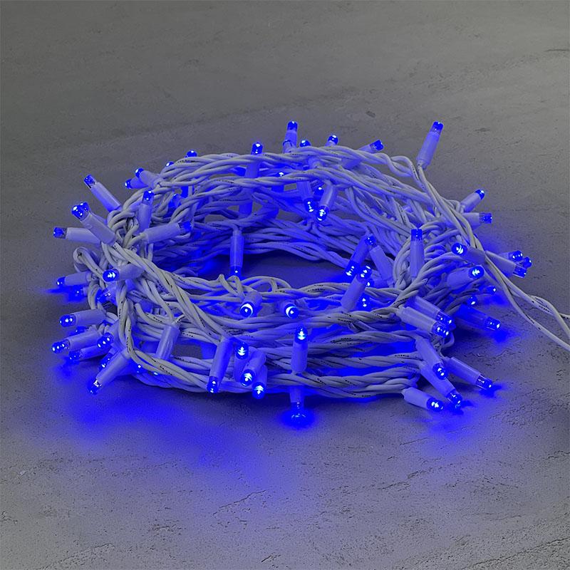 Гирлянда Нить 10м Синяя 220В, 100 LED, Провод Белый Каучук, IP65