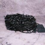 Нити подключаются к электрической сети 220В. Некоторые гирлянды имеют возможность последовательного соединения в одну цепь. Все необходимое для подключения к сети и наращивания гирлянды идет в комплекте.