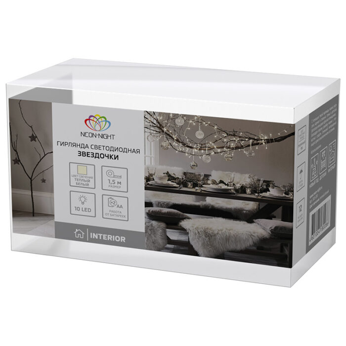 Гирлянда "Прищепки", работающая от двух батареек АА, не требует подключения к розетке и полностью безопасна. Это делает ее мобильной и открывает широкие возможности для светового оформления.