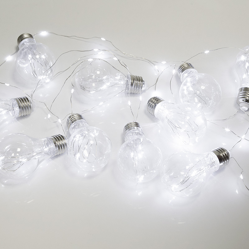 Гирлянда Ретро-лампы 3м, Белый с постоянным свечением, 4.5В, 100 LED, Провод Прозрачный ПВХ, IP20