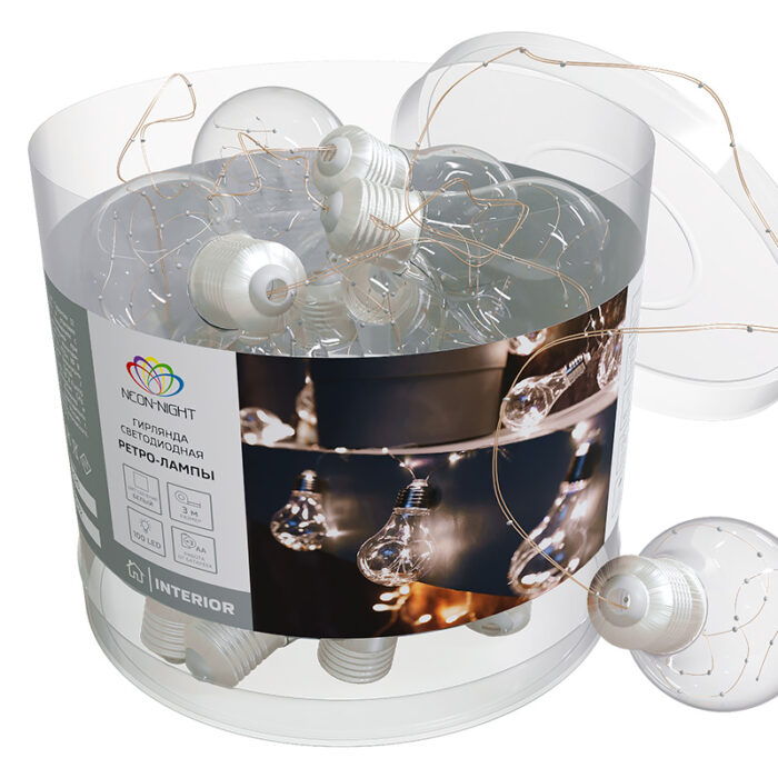 Ретро-гирлянда длиной 3 метра станет оригинальным и стильным акцентом в интерьере, украшая пространство не только в период новогодних торжеств, но и в обычные дни. Это гибкий провод, на котором размещены 100 светодиодов, излучающих мягкое свечение.