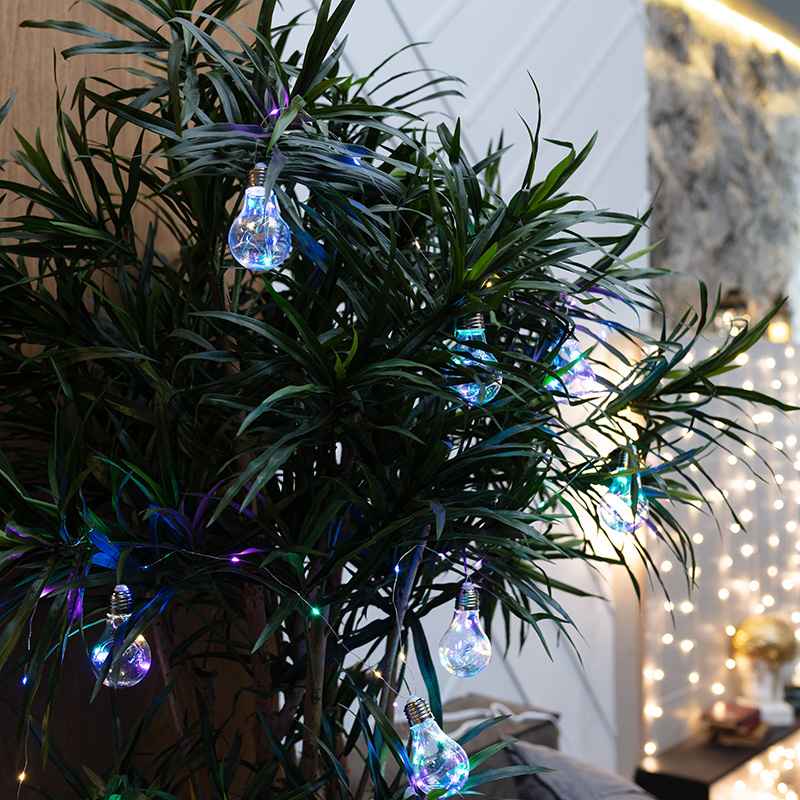 Ретро-гирлянда длиной 3 метра станет оригинальным и стильным акцентом в интерьере, украшая пространство не только в период новогодних торжеств, но и в обычные дни. Это гибкий провод, на котором размещены 100 светодиодов, излучающих мягкое свечение. На проводе также закреплены 10 декоративных насадок, имитирующих старинные лампы накаливания с серебристыми основаниями, которые эффектно подсвечиваются светодиодами изнутри. Важным преимуществом гирлянды является ее автономность: она работает от 3 батареек типа АА, что обеспечивает полную безопасность и удобство использования.