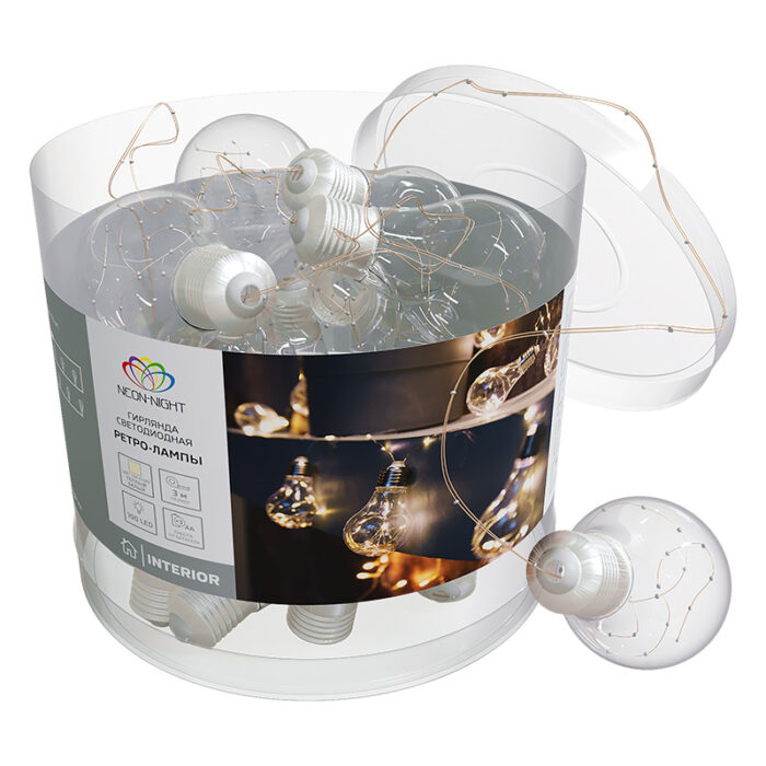 Ретро-гирлянда длиной 3 метра станет оригинальным и стильным акцентом в интерьере, украшая пространство не только в период новогодних торжеств, но и в обычные дни. Это гибкий провод, на котором размещены 100 светодиодов, излучающих мягкое свечение.