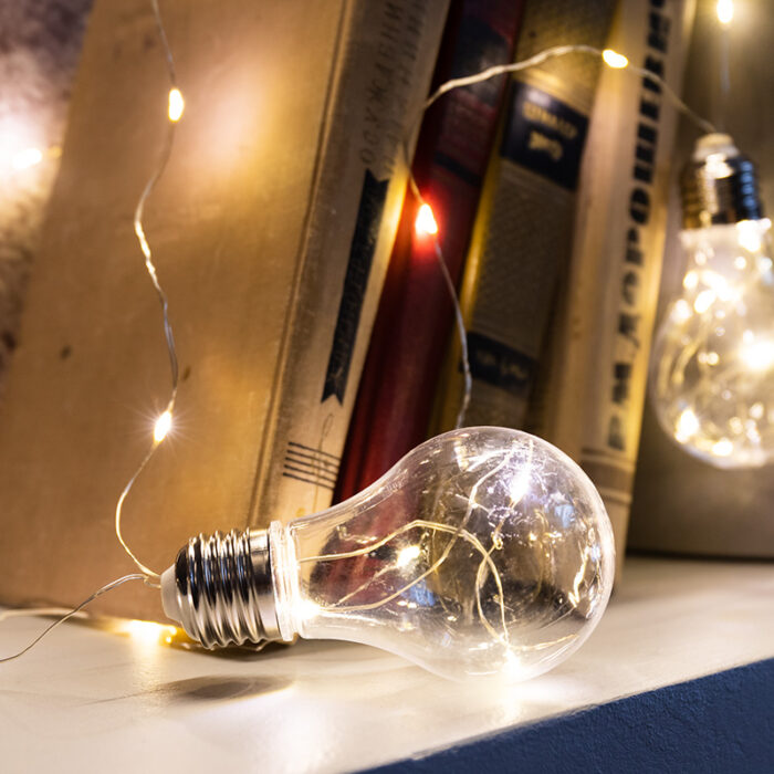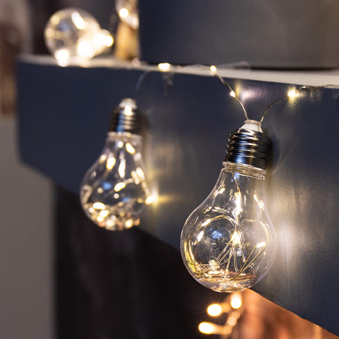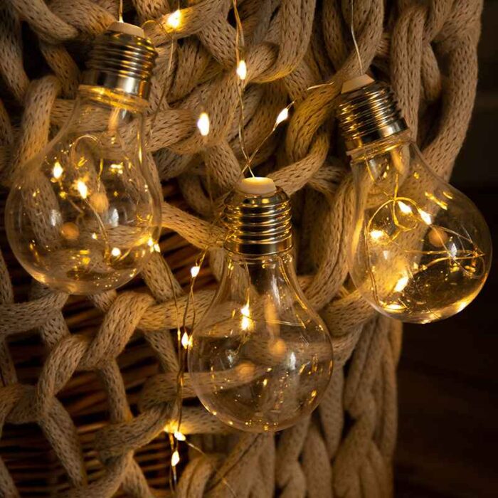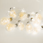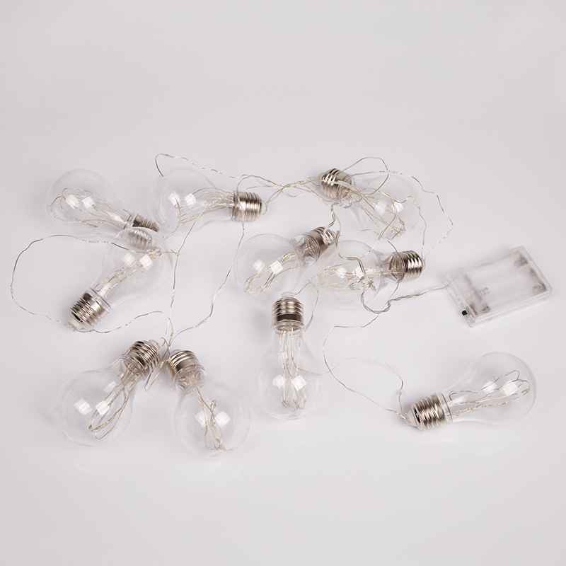 Ретро-гирлянда длиной 3 метра станет оригинальным и стильным акцентом в интерьере, украшая пространство не только в период новогодних торжеств, но и в обычные дни. Это гибкий провод, на котором размещены 100 светодиодов, излучающих мягкое свечение. На проводе также закреплены 10 декоративных насадок, имитирующих старинные лампы накаливания с серебристыми основаниями, которые эффектно подсвечиваются светодиодами изнутри. Важным преимуществом гирлянды является ее автономность: она работает от 3 батареек типа АА, что обеспечивает полную безопасность и удобство использования.