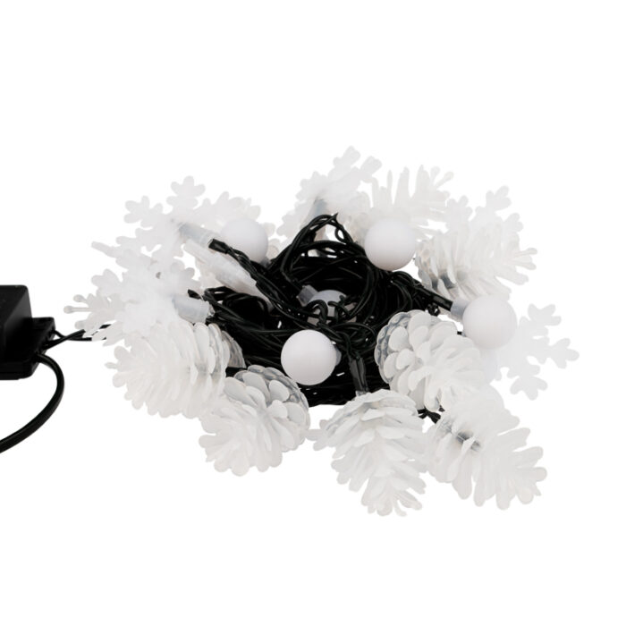 Гибкая светодиодная гирлянда, длиной 4,4 метра, предлагает свежий взгляд на праздничное оформление. Тридцать светоизлучающих диодов, интегрированных в провод с защитным слоем из зеленого поливинилхлорида, украшены декоративными элементами в форме елей, снежных кристаллов и сфер. Разноцветные лампочки, контролируемые блоком управления с восемью различными настройками, подарят радостную атмосферу и обогатят любой дизайн. Питание гирлянды осуществляется от электрической сети с максимальным напряжением 230 В.