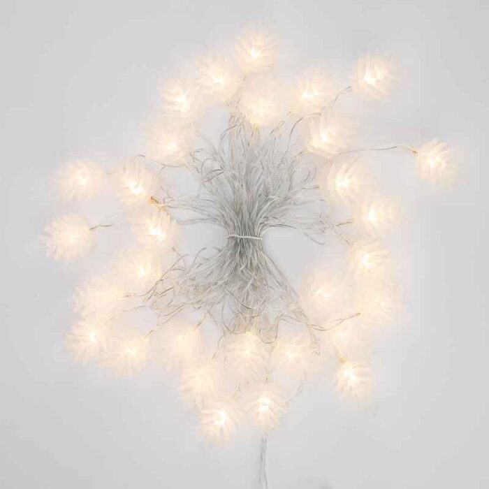 Гирлянда Шишки 5м, Тепло-Белый свечение с динамикой, 230В, 30 LED, Провод Прозрачный ПВХ, IP20