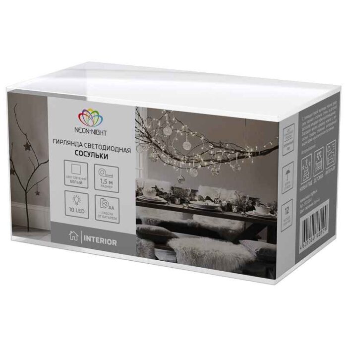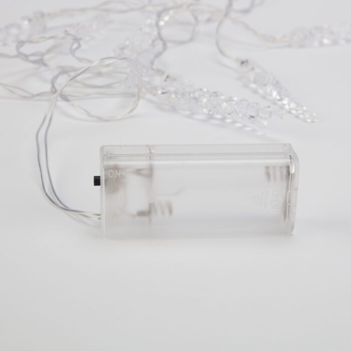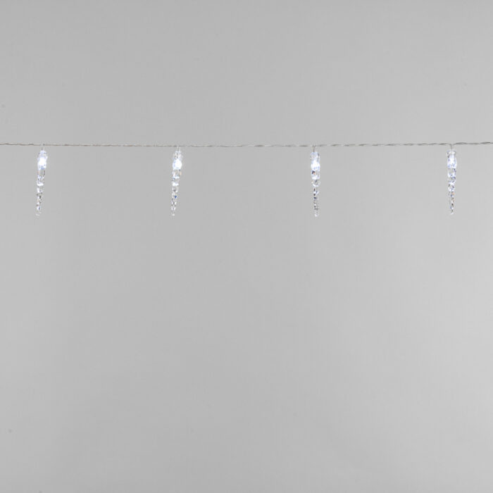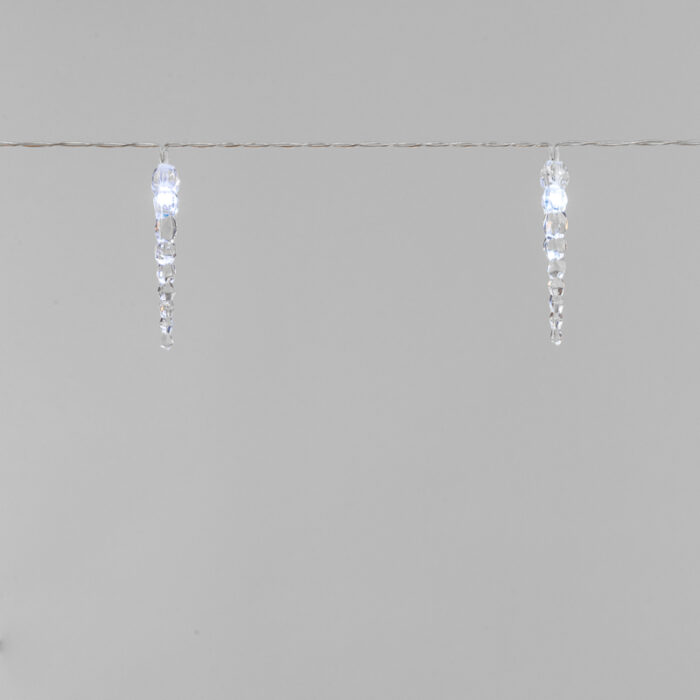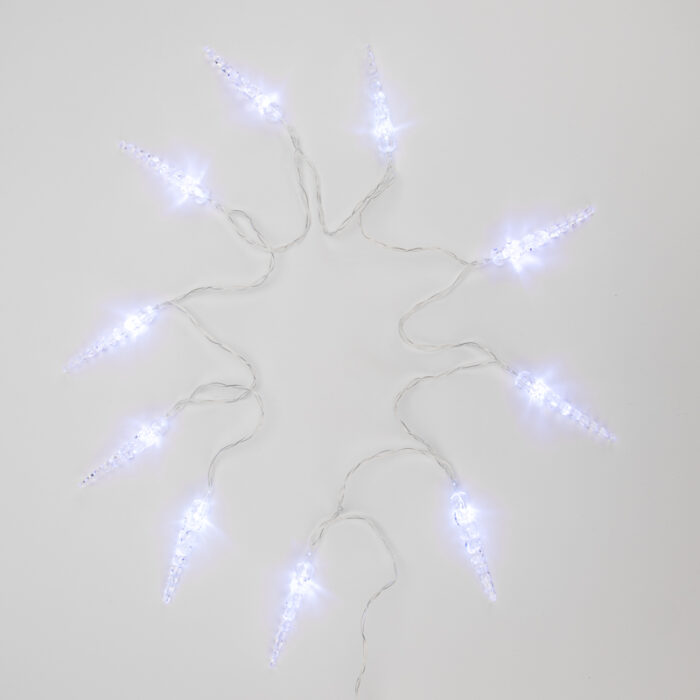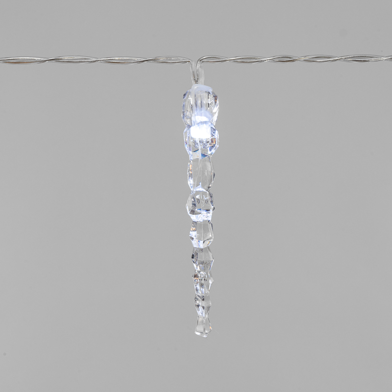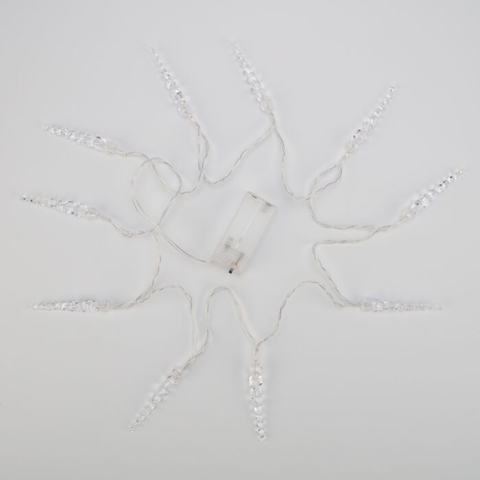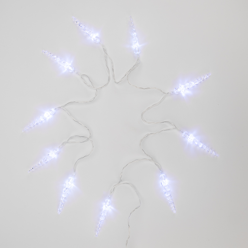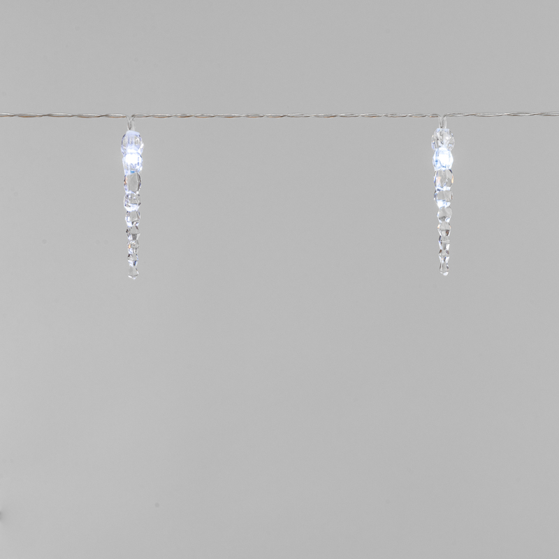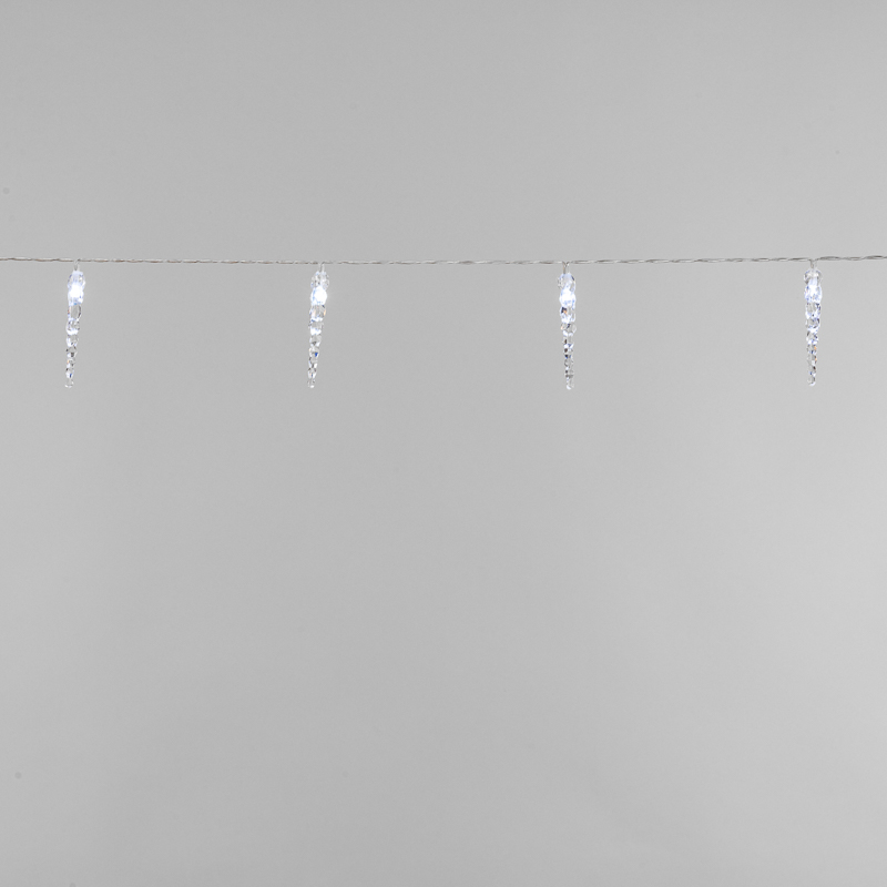 Гирлянда Сосульки 1.5м, Белый с постоянным свечением, 3В, 10 LED, Провод Прозрачный ПВХ, IP20
