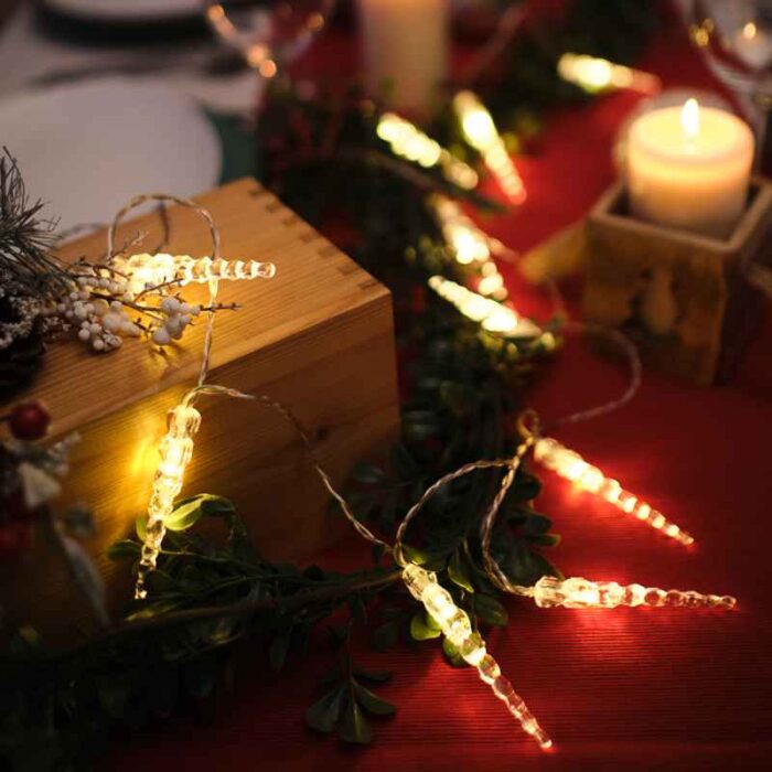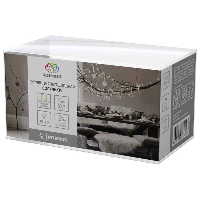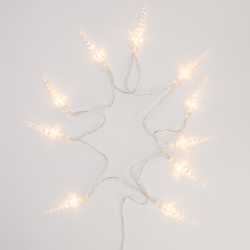 Гирлянда «Сосульки» со светодиодами, длиной в 1,5 метра – превосходный выбор для создания новогодней атмосферы. Десять насадок, имитирующих сосульки, ярко освещены диодами. Уникальный дизайн, новогодняя тематика, автономность от электросети и полная безопасность предоставляют широкие возможности для украшения интерьера.