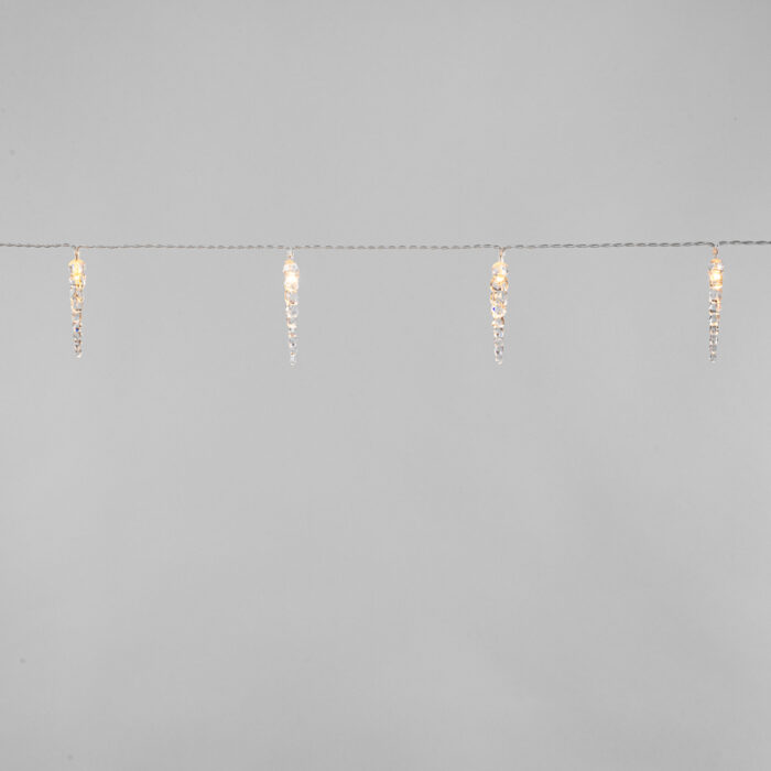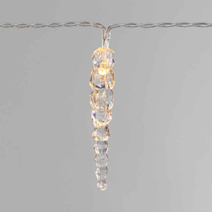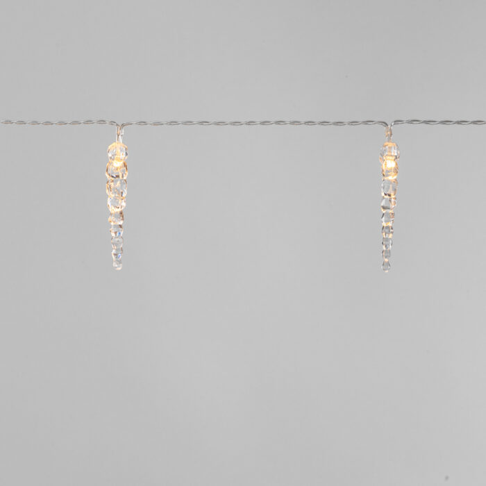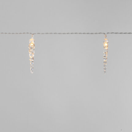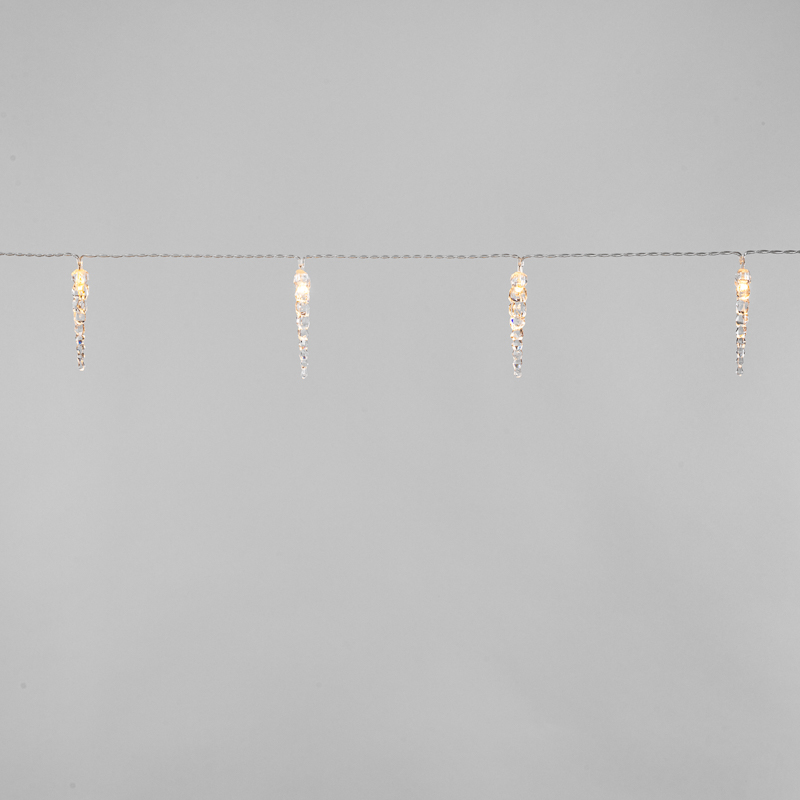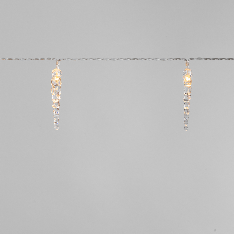 Гирлянда Сосульки 1.5м, Тепло-Белый с постоянным свечением, 3В, 10 LED, Провод Прозрачный ПВХ, IP20