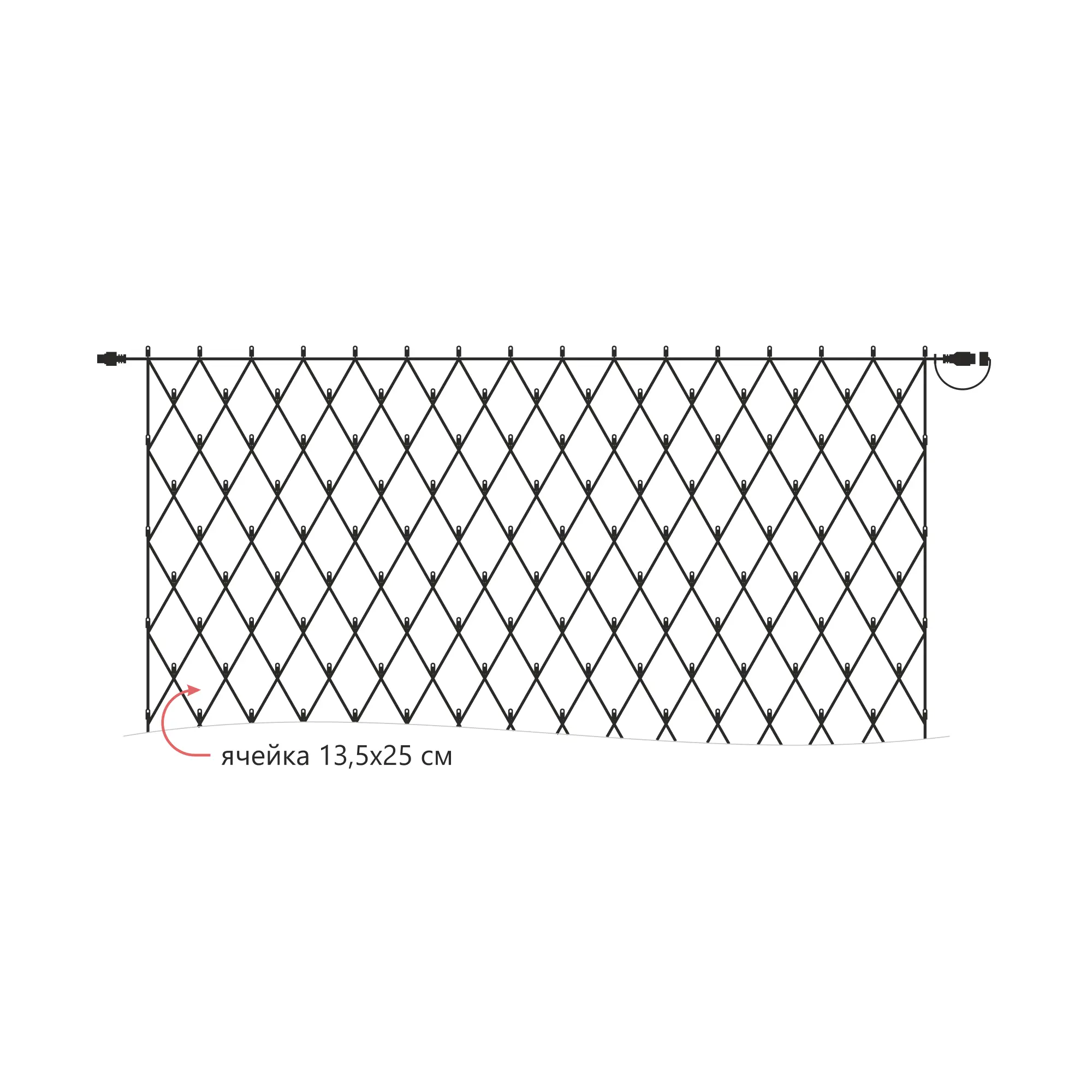 Сетчатая структура гирлянды делает её незаменимой в ландшафтном дизайне, а также весьма популярной в украшении туй, входных групп и колонн, летних веранд и беседок, заборов и перил, окон и витрин, в производстве световых фигур, для создания звёздного неба.