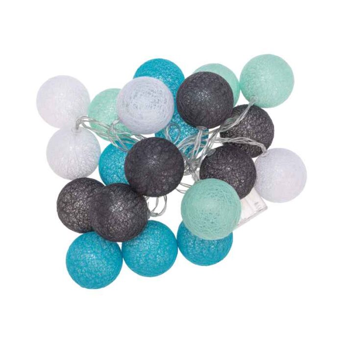 Гирлянда «Тайские фонарики Северное сияние» — это оригинальное световое украшение длиной 3,5 метра, представляющее собой нить с круглыми шарообразными элементами из хлопковой пряжи. В каждом шарике скрыт светодиод, излучающий приятный тёплый белый свет.