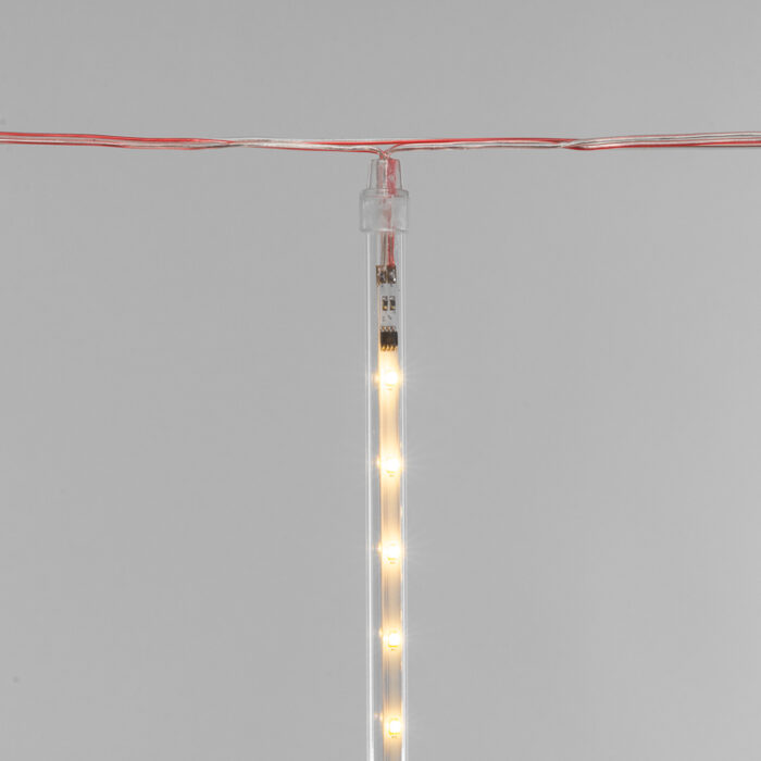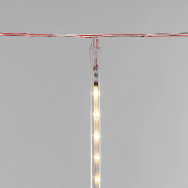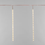 За динамику свечения, имитирующую стекающие капли воды, отвечает встроенный микроконтроллер. В комплект поставки входит трансформатор. Длина провода питания составляет полтора метра. Эта гирлянда принесет в ваш дом неповторимую атмосферу праздника и волшебства.