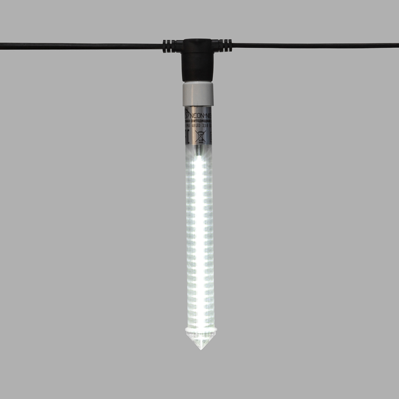 5Светодиодная "сосулька" – это прозрачная трубка длиной в 1 метр. Внутри трубки расположена тонкая двухсторонняя плата с диодами и микросхемой, отвечающей за создание визуального эффекта падающей капли. Этот эффект преображает окружающую обстановку, наполняя её волшебством. Общая длина изделия – 50 сантиметров.