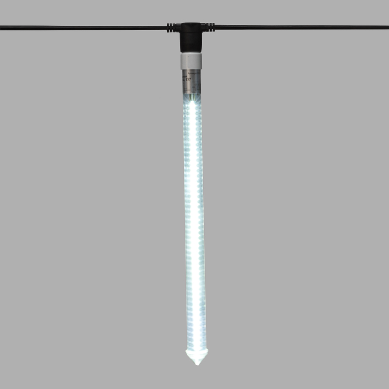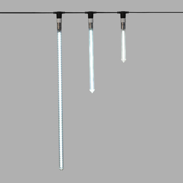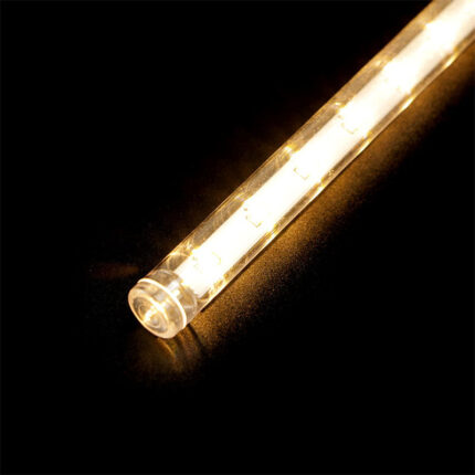 Светодиодная «сосулька» – это прозрачная трубка длиной в 1 метр. Внутри трубки расположена тонкая двухсторонняя плата с диодами и микросхемой, отвечающей за создание визуального эффекта падающей капли. Этот эффект преображает окружающую обстановку, наполняя её волшебством.