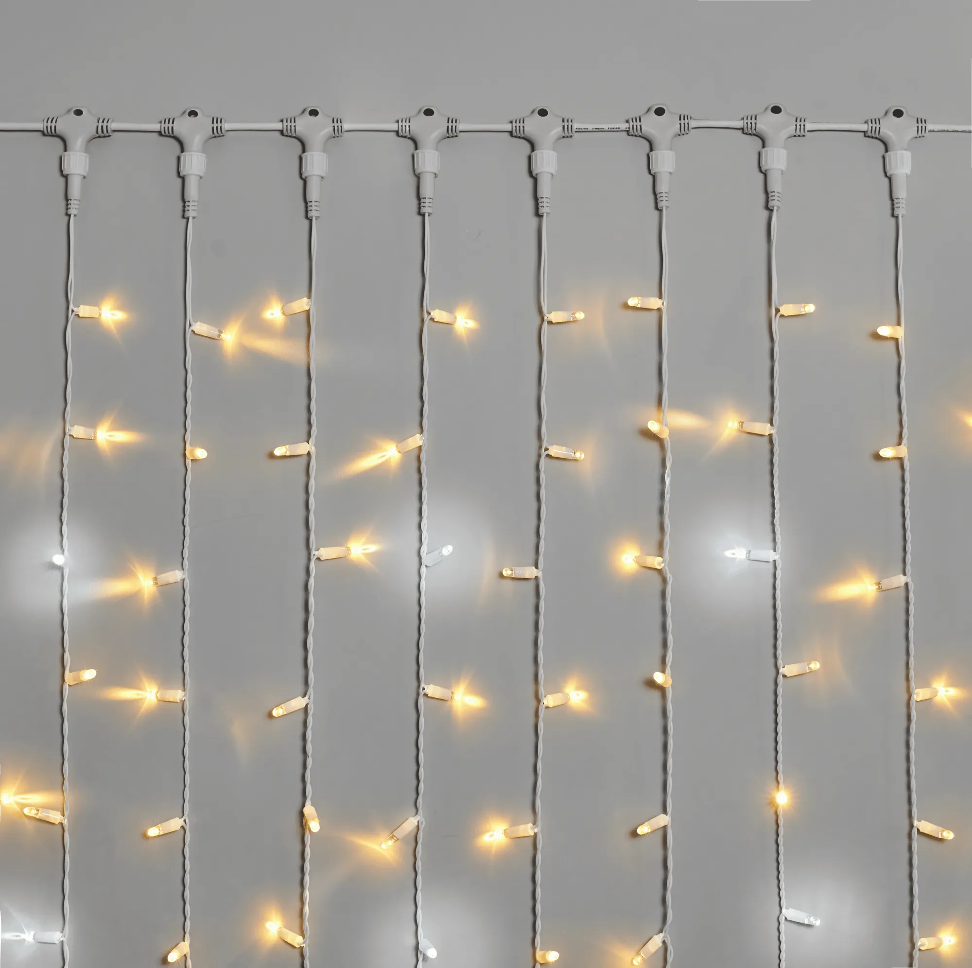 Гирлянда Занавес 2×9 м. Теплый Белый 220В, 1500 LED, Провод Белая Резина, Мерцающий, IP65