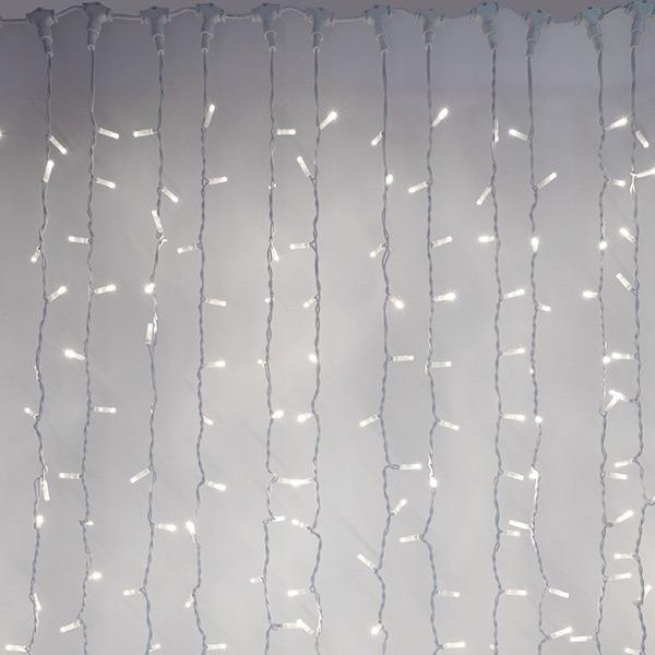 Гирлянда Занавес 2 x 3 м Белый 220В, 600 LED, Провод Белый Каучук, IP65