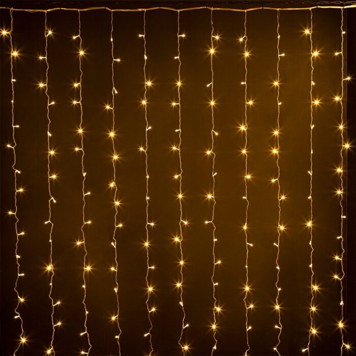 Гирлянда Занавес 3х3 м. Тепло-Белый 220В, 450 LED, Провод Прозрачный ПВХ, Мерцающий, IP20