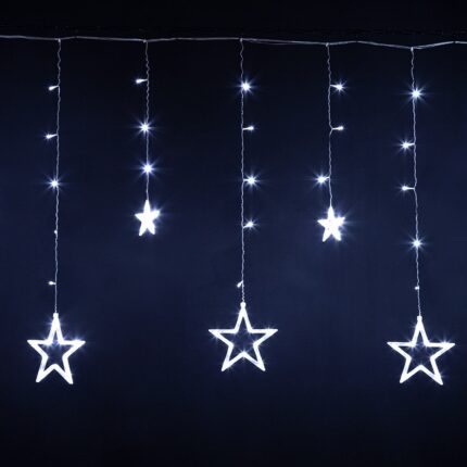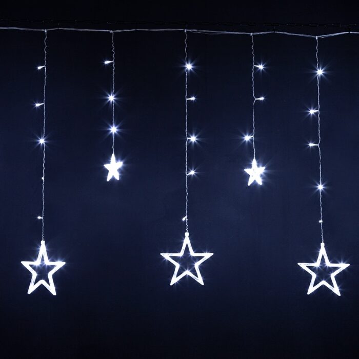 Гирлянда Занавес со звездами 3 м. Белый 220В, 138 LED, Провод Прозрачный ПВХ, Мерцающий, IP20