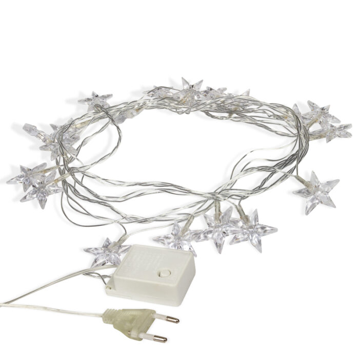 Гирлянда «Звездочки» с LED-элементами привнесет в ваш дом чарующую атмосферу праздника и волшебства. Изделие представляет собой серебристый провод, заключенный в прозрачную ПВХ-изоляцию, на котором размещены светящиеся LED-лампочки.