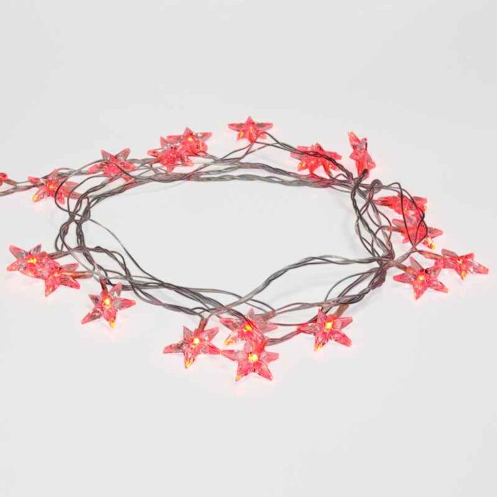 Гирлянда Звездочки 2.8 м, Красный свечение с динамикой, 230В, 20 LED, Провод Прозрачный ПВХ, IP20