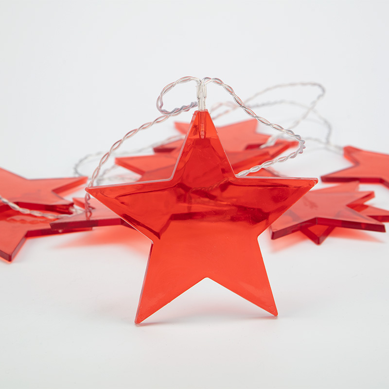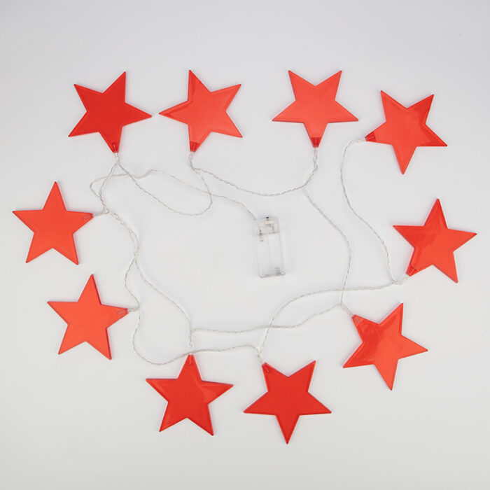 На прозрачном ПВХ-проводе размещены 10 звезд, излучающих свет белых диодов. Это стильное, современное и безопасное украшение прекрасно впишется в детскую, спальню, гостиную или офис.