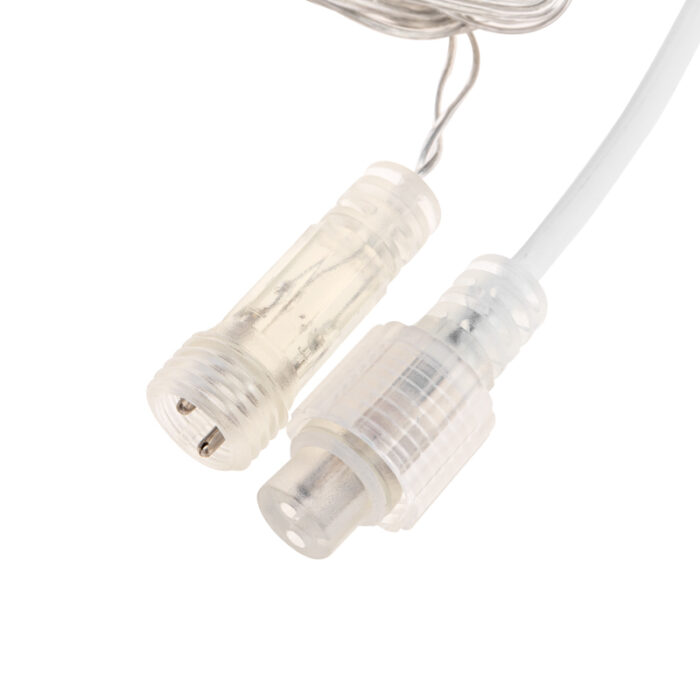 Гирлянда работает от стандартной розетки, имеет встроенный шнур питания (3 м), и может быть соединена в линию до 5 гирлянд — итого до 50 метров. Это удобно при оформлении длинных конструкций: навесов, веранд, витрин, торговых входных групп.