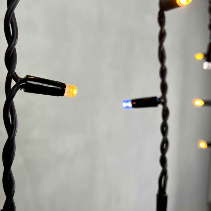 Профессиональный чёрный провод из морозостойкого каучука толщиной 3,3 мм надёжен, прочен и устойчив к механическим повреждениям. Такой материал используется в гирляндах премиум-класса. Он сохраняет эластичность на морозе (до −30 °C), не трескается со временем и защищает контакты от попадания влаги. Чёрный цвет провода универсален и подходит для монтажа на большинстве фасадов, оставаясь малозаметным даже днём.