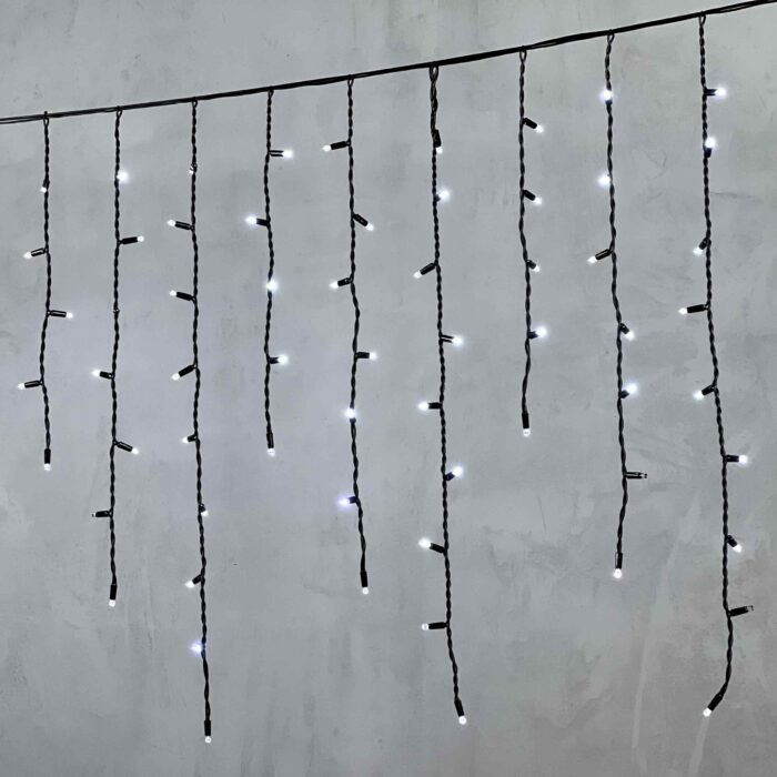 Гирлянда Бахрома 3.2 м Белая с Мерцанием, IP65, Чёрный Провод
