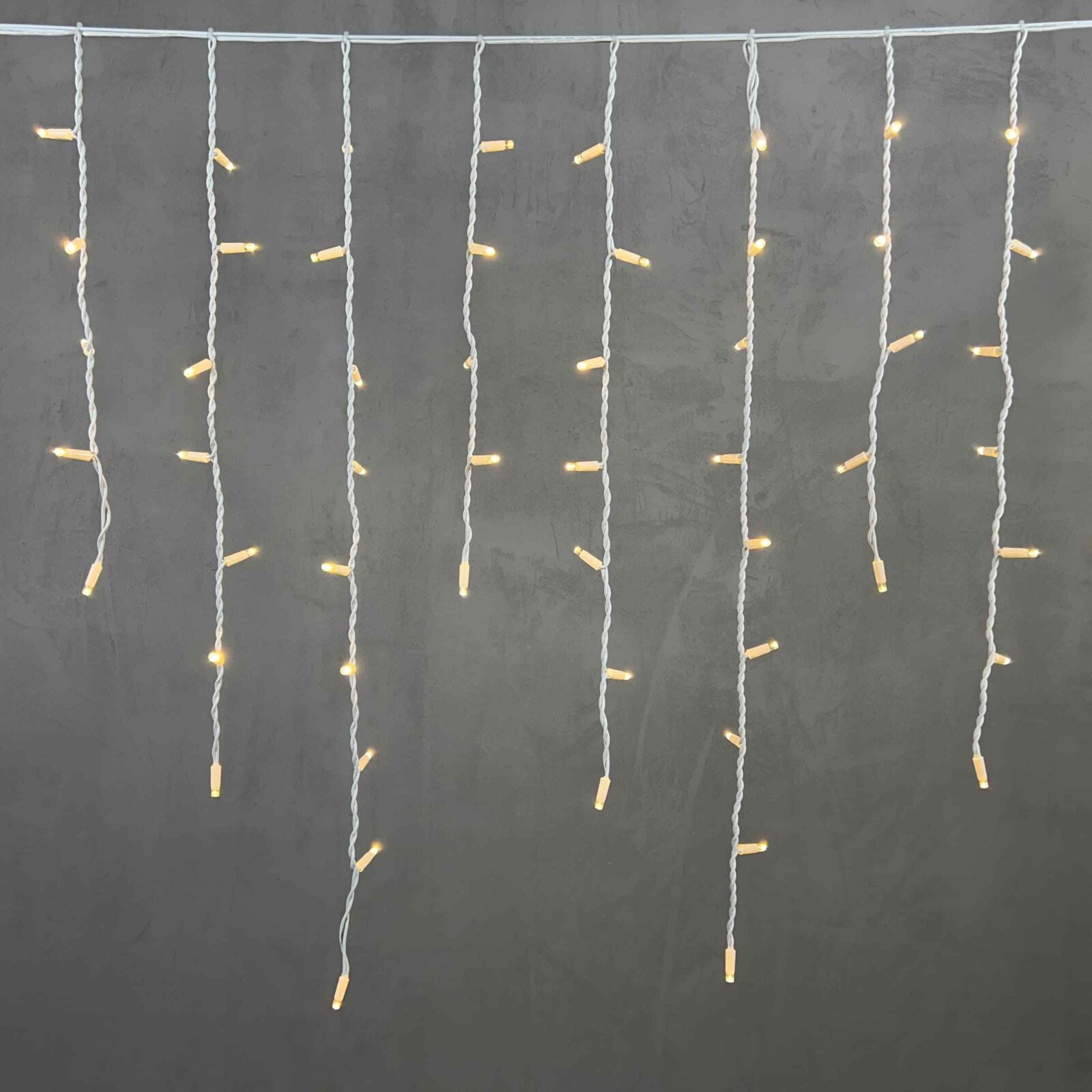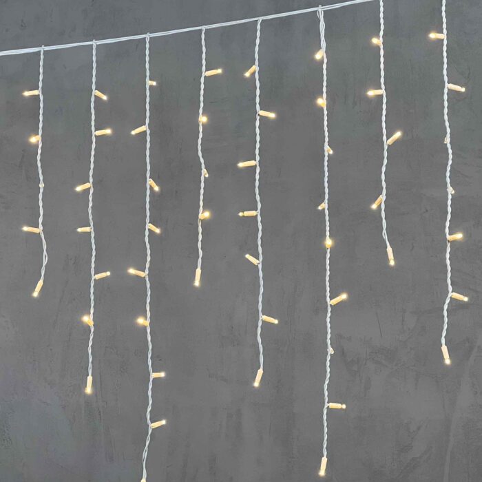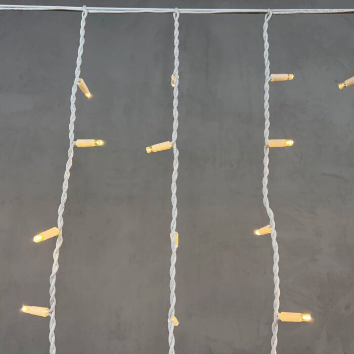 Теплая уличная гирлянда-бахрома длиной 3,2 м и высотой 0,9 м. Белый каучуковый провод, 168 ярких светодиодов, надёжная пылевлагозащита IP65. Отличный выбор для оформления фасада дома, террасы или кафе. Подходит для круглогодичного использования в Москве и МО.
