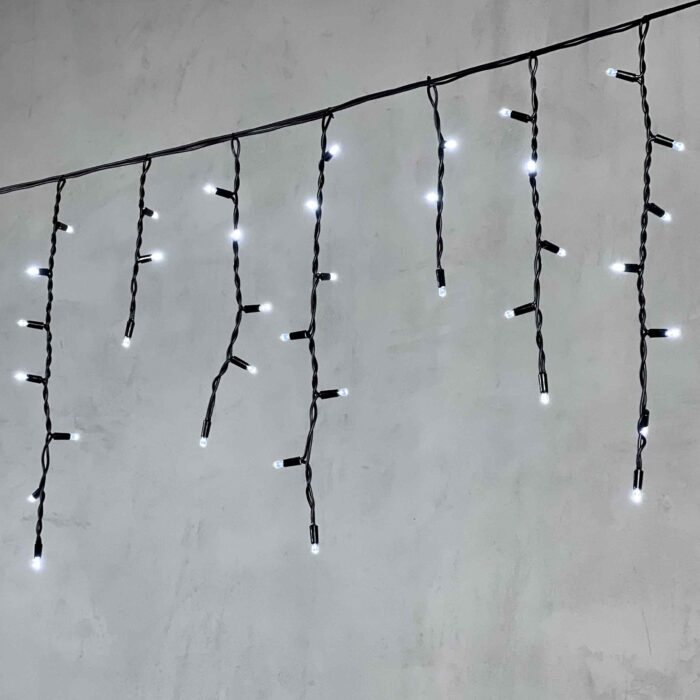 Гирлянда Бахрома 3,1 м Белая Статика, 120 LED, Чёрный Каучук, IP65, LTC