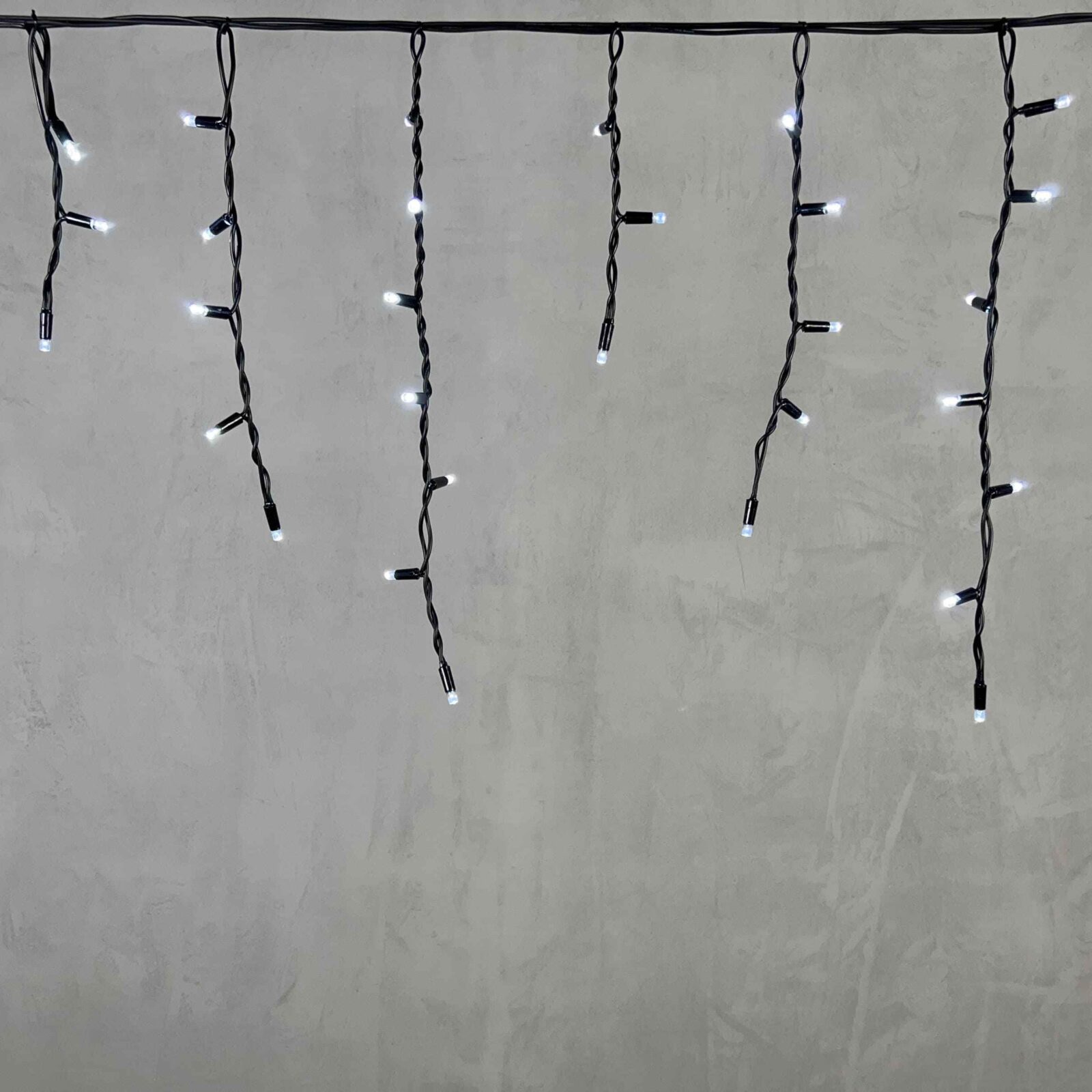 Надёжная фасадная бахрома на чёрном каучуке с белым статичным свечением. 120 ярких светодиодов на 3,1 м, IP65, подключение до 10 гирлянд в одну цепь. Подходит для круглогодичного использования. Устойчивость к морозу и влаге.