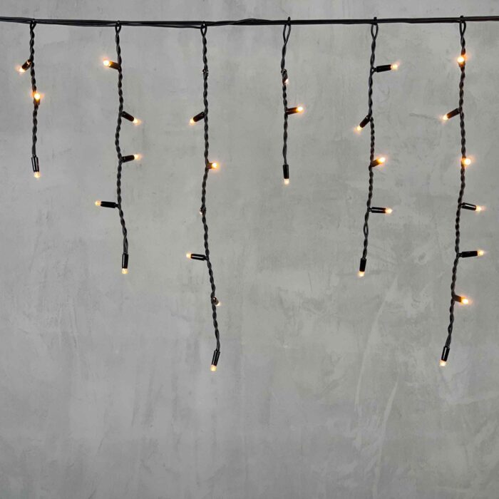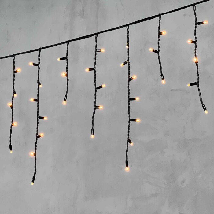 Премиум-бахрома на чёрном каучуковом проводе с экстра тёплым белым свечением. Длина 3,1 м, 120 LED, IP65. Идеальна для оформления фасадов, навесов и заборов. Подходит для круглогодичного применения. Соединяется до 31 м в цепь.
